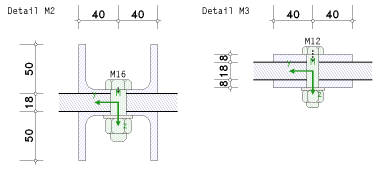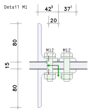 2 x Blech 80x8 (beidseitig) angschraubt mit je 3 x M12, 8.8, Stahlgüte S235 |