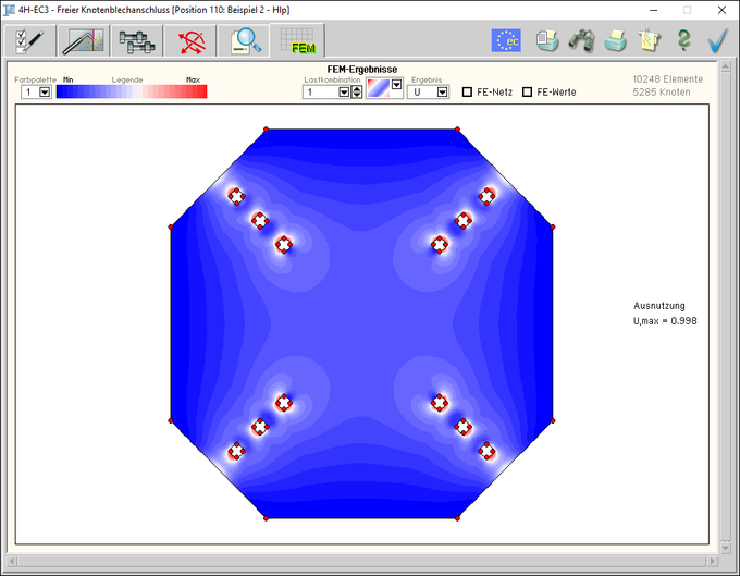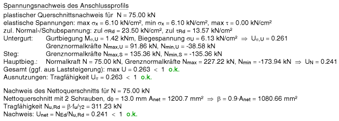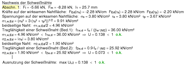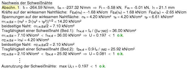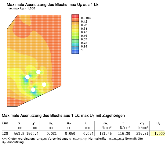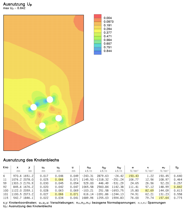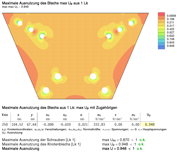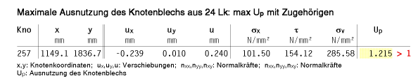 | Im Endergebnis wird die maximale Ausnutzung des Knotenblechs