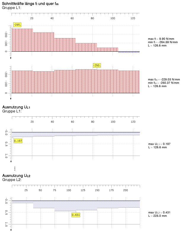 | Die Grafiken vermitteln einen Gesamteindruck des Tragverhaltens des Knotenblechs. |