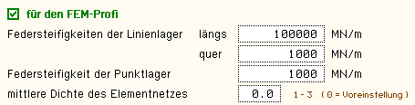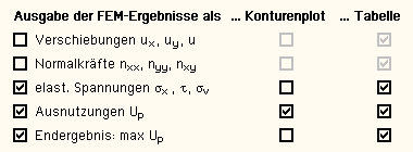 spezielle FEM-Parameter angepasst und Ausgabeoptionen