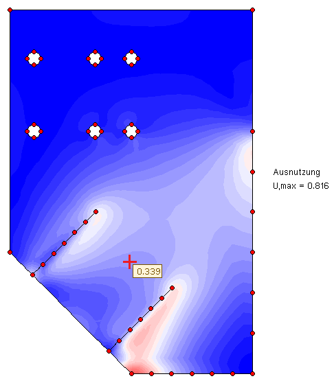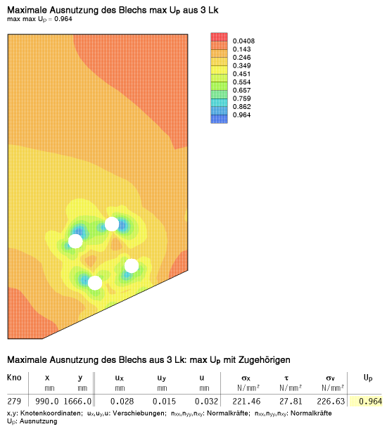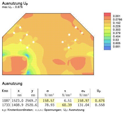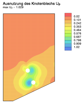 Aus dem Konturenplot der Knotenblech-Ausnutzungen