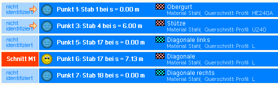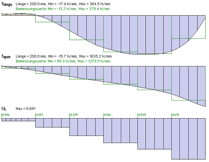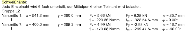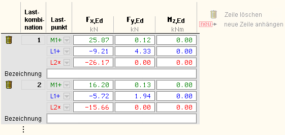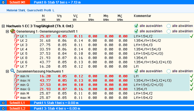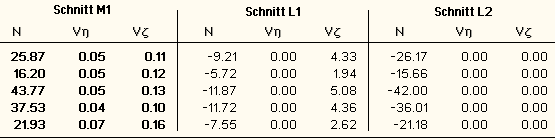 (FEM-Berechnung) der berechneten Lastkombinationen grafisch und tabellarisch