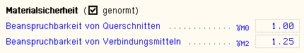 | Außerdem werden die Materialsicherheitsbeiwerte,