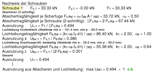 sie die Lochleibungsbeanspruchung der Schrauben (Usc =