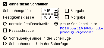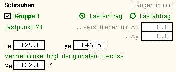 Anordnung und Parameter der Schraubengruppen festgelegt. |