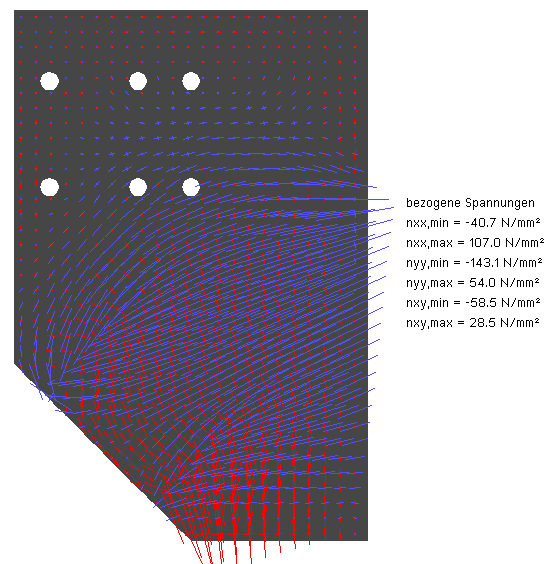 die FEM-Ergebnisse (Scheibe, Linien) grafisch aufbereitet