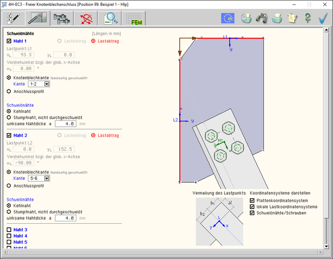 | EC 3, Knotenblech mit freier Anschlusskonfiguration |