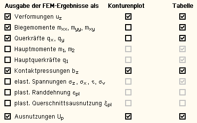 Außerdem können Ausgabeoptionen zu den Berechnungsergebnissen