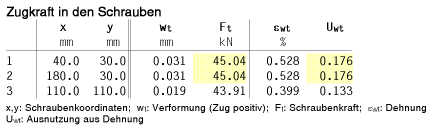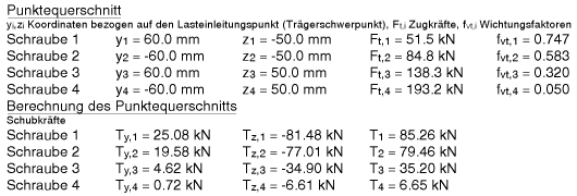 | Schraubenkräfte 0.8, 5.7, 75.2, 130.7 kN |