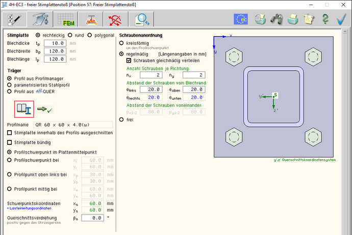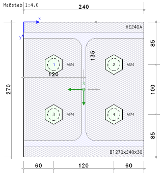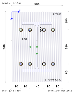 Stirnplatte und der Trägerquerschnitt festgelegt.