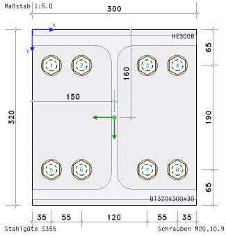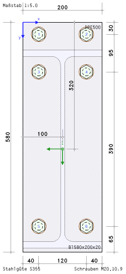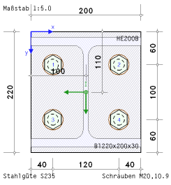 | Beispiel 3: HEB200, S355, 2x2 Schrauben M20, 10.9 (ETH 10K1) |