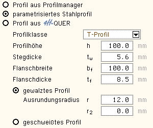 im Stahlquerschnitt benötigten Parameter werden