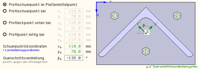 und das Koordinatensystem des Trägerprofils