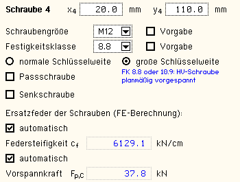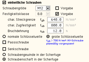 die Stahlgüte und die Schraubenparameter vorgegeben