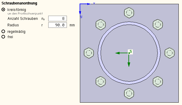 wird die Anordnung von Profil und Schrauben auf