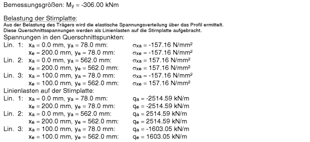 Die am Trägerende einwirkenden Spannungen wirken daher auch auf der Stirnplatte. |