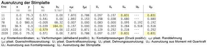 die Ergebnisse (Ausnutzungen) lastfallweise und detailliert