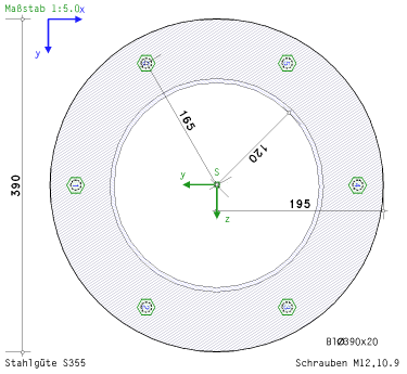Kreisrohr, S355, 6 Schrauben M12, 10.9, MEd = 30 kNm |