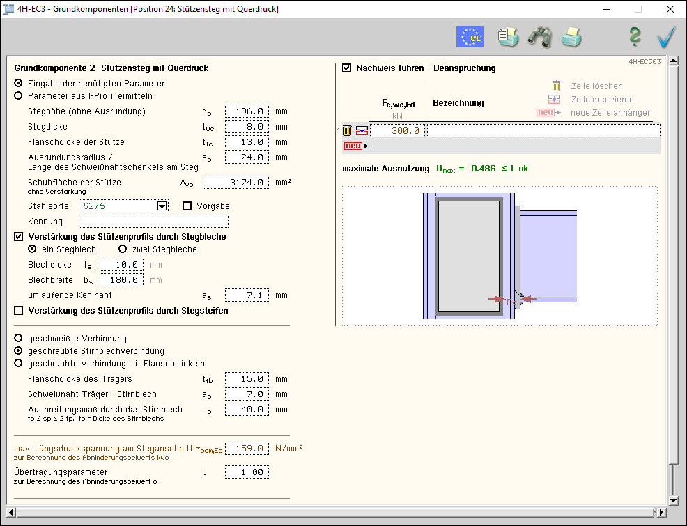 -EC3GK, Grundkomponenten, Eingabeoberfläche Stützensteg mit Querdruck