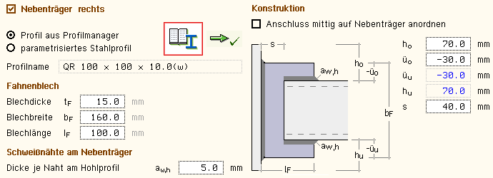 bzw. das Anschlussprofil (Winkel, T-Profil) einzugeben. |