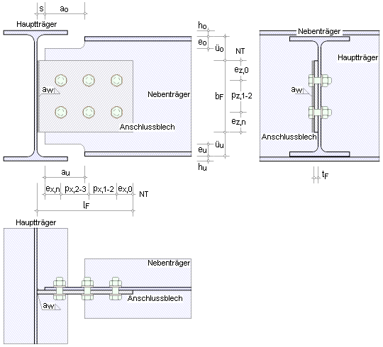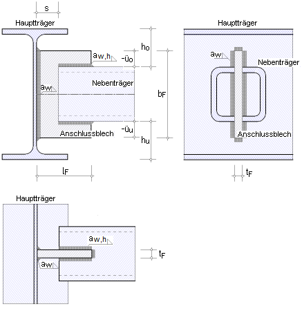 und Schweißnahtdicken am Hauptträger anzugeben. |