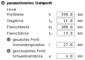 Außerdem werden die Abmessungen des Stirnblechs sowie die Schweißnahtdicken