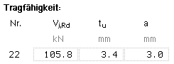 und ggf. Schweißnahtdicke, Stegdicke des Hauptträgers) wird in Register