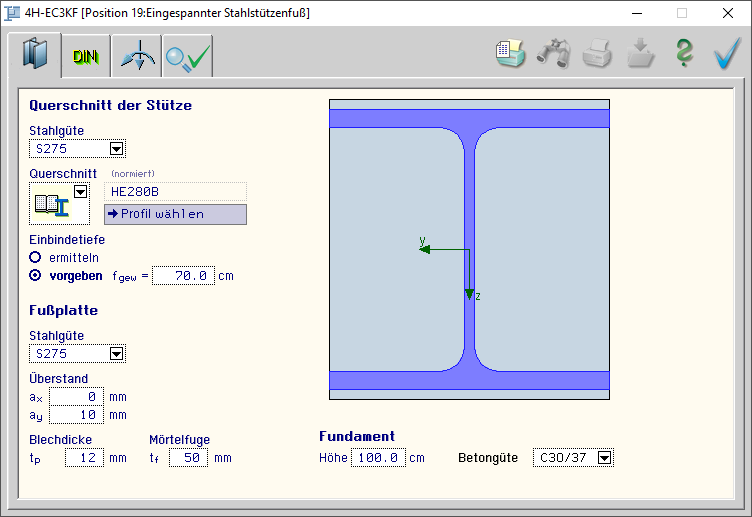 -EC3KF, Stahlstütze - Querschnitt und Material
