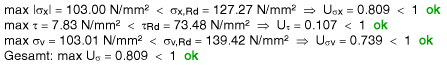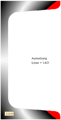 deutliche Spannungsüberschreitung (Ausnutzung U = 1.41 > 1), während