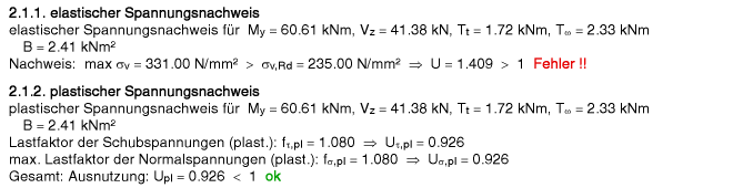 aus Torsion. Da dieser Querschnitt wölbempfindlich ist, werden zusätzlich