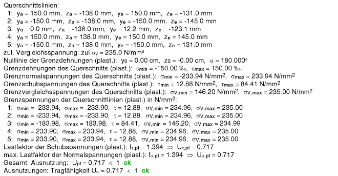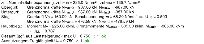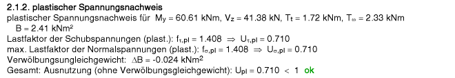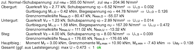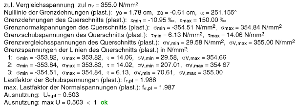 der plastische Spannungsnachweis (DIV) mit U = 0.93 gelingt. |