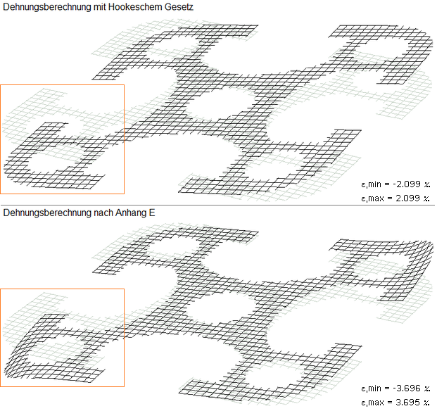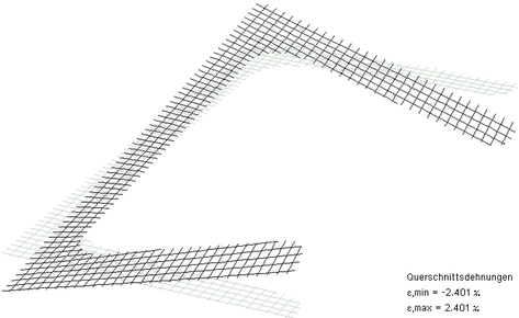 der Dehnungen als Deformationsplot erzeugt. Im Ergebnis-Darstellungsfenster