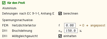 ist, kann die Berechnung auch ohne Einhaltung durchgeführt werden. Dazu ist der Profi-Button zu