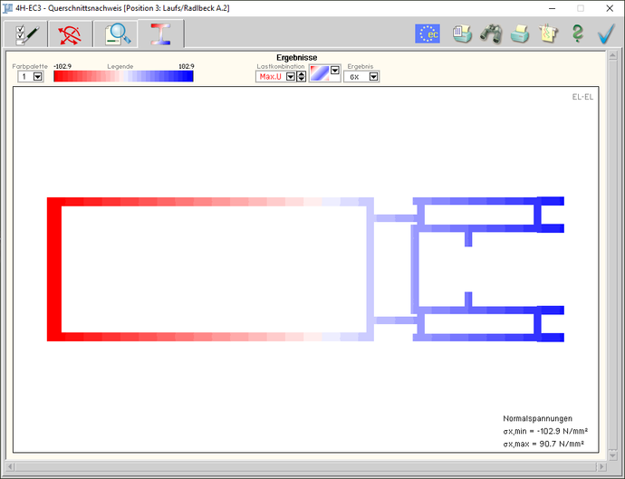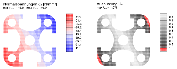 | Der elastische Spannungsnachweis (FEM) zeigt eine