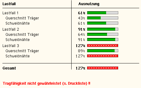| Eine Box zeigt an, ob ein Lastfall die Tragfähigkeit
