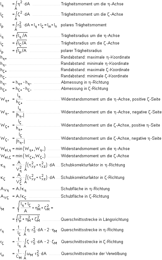 | Ergebnisse im η-ζ-Hauptachsensystem |