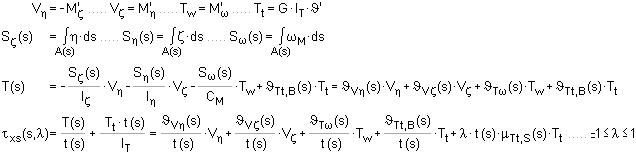 Für dünnwandige Querschnitte werden zur Berechnung des Schubflusses T und der Schubspannung τxs in