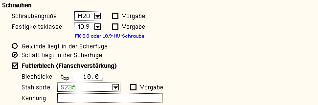 Der weitere Berechnungsablauf erfolgt analog dem der geschweißten Verbindung und ergibt für den