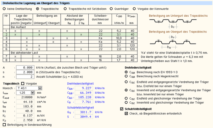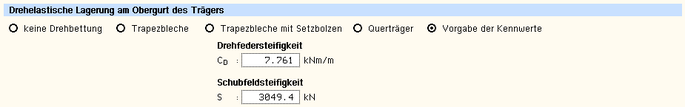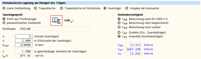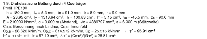 Der Drehfederanteil durch die Querträger wird nach Lindner (s. Theorie Drehfeder) bestimmt. |