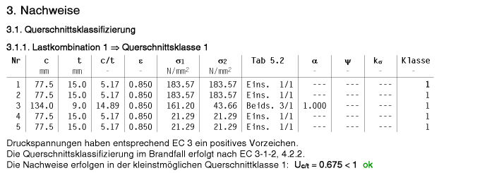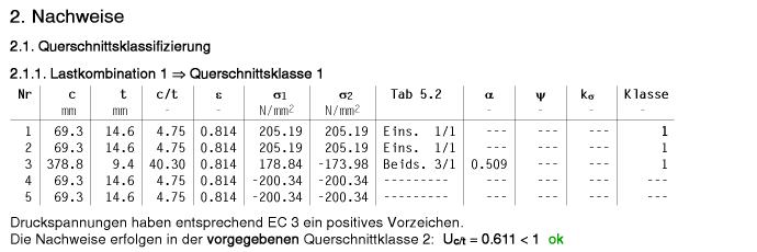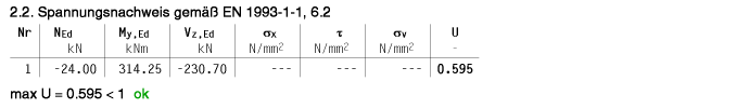 den Stabilitäts- und Spannungsnachweisen ausgegeben. Die