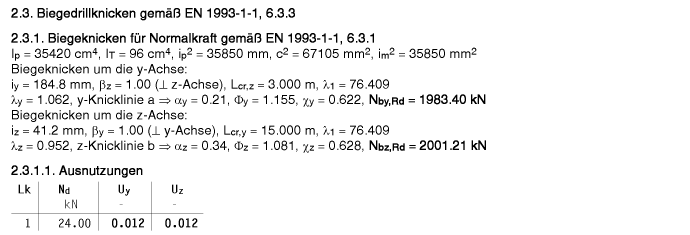 | Der Nachweis des Biegedrillknickens beinhaltet den Biegeknicknachweis,