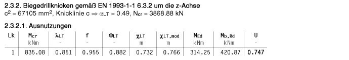 | Der Biegedrillknicknachweis wird für das Biegemoment