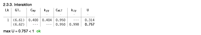 die Tragfähigkeit über die Interaktionsbeziehung n. EC
