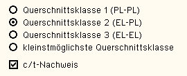 Einordnung des Querschnitts in eine Klasse, die die Lastaufnahmekapazität