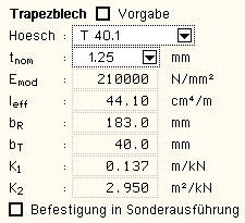 werden, daher wurde die Querschnittsklasse 2 vorgegeben. |