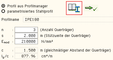 im Registerblatt Nachweise, Material, Querschnitt. |