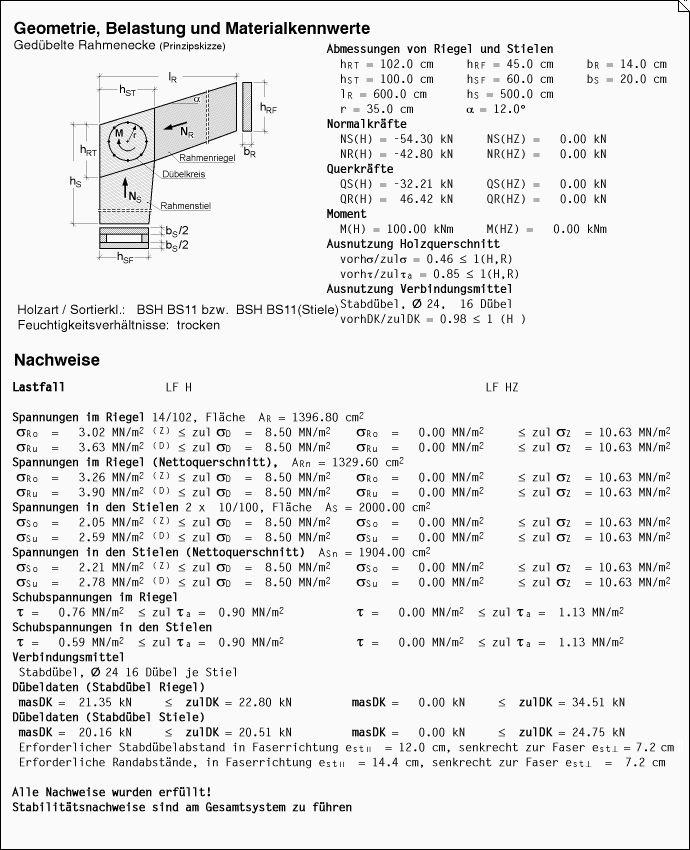 der Nachweisgruppe der Anschlüsse sind die Nachweistypen gedübelte Rahmenecke und