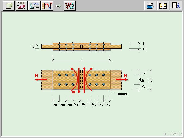 Dieser Abschnitt zeigt das Eingabefenster für den Bauteiltyp Zugstoß und das fertig gesetzte Ergebnisprotokoll