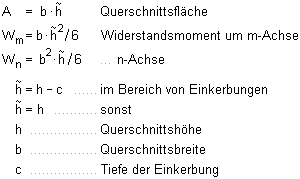 und Querschnitte sowie ggf. Einkerbungen beschrieben |