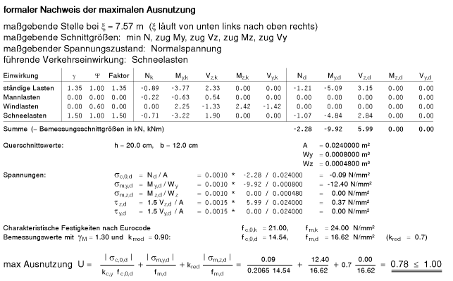 | Während unter der Überschrift Lastfallergebnisse die Extremalen der definierten